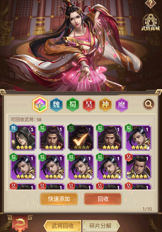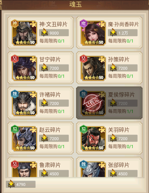 4.通过分解/回收后的魂玉可在【武将商城】进行5星武将碎片兑换